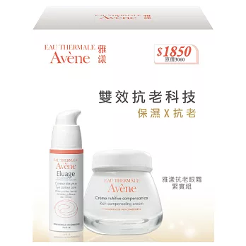產品說明產品內容物與規格說明/保固資訊雙效抗老科技,提高肌膚緊實及彈性。 組合內容:雅漾抗老無痕眼霜 15ML+雅漾緊實彈力滋養霜50ML*1 |